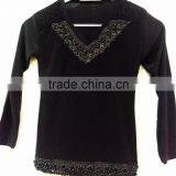 "100% COTTON V-NECK WITH SEQUENCE WORKED TOP"