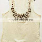 "100% ORGANIC COTTON SCOOPE NECK &SEQUENCE WORKED TANK TOP"