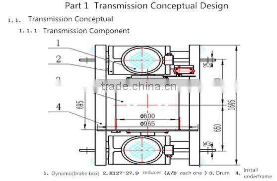 Portions of efficiency: even sleeve transmission efficiency η1=0.99, speed reducer efficiency η2=0.98, transmission efficiency is η3=0.98, substituted into the drum