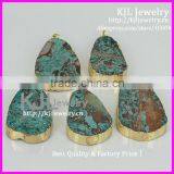KJL-CST 16 Wholesale New Design Natural Green/white Horn Shape Turquoise Pendant Charm Pave Rhinestones Gem Druzy Stone Pendant