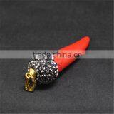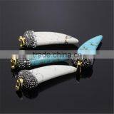 KJL-CST 18 Natural Yellow/blue/white/red/purple Horn Shape Turquoise Pendant Charm Pave Rhinestones Gem Druzy Stone Pendant