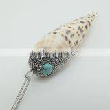 Factory Price Beige Sea Conch Large Rhinestone Pendant With Turquoise Gemstone Paved Pendants Charms