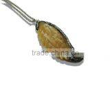 Fashion Angel Wing Shape Agte Stone Silver Necklace Druzy Charm Stone Pendant Chain Necklace