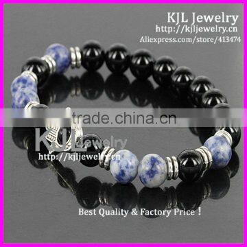 KJL-A0246 Wholesale Silver Hamsa Palm Charm Bracelet,natural Agate Stone Beaded Evil Eye Bracelet Bangle