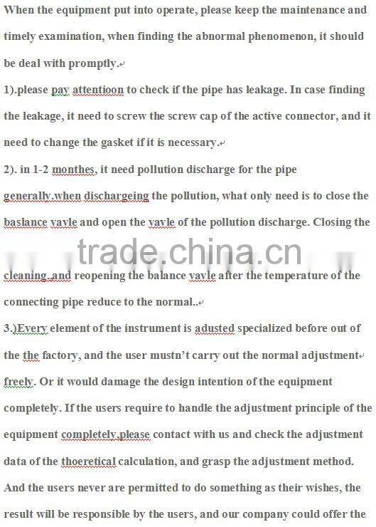 The matters need attentions before the equipment put into operation. 1. the connecting pipe system are injected with cold water as the transmission medium.