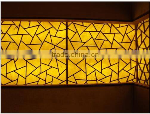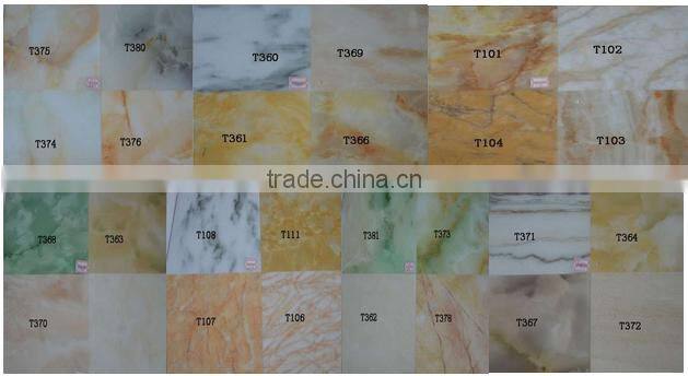 Dahan new translucent stone, independently researched and invented by Linyi Dahan Decoration Materials Co.,Ltd, is a kind of ultrathin translucent stone exclusively patented to us. The product is plastic sheet with jade and marble patterns and there are two kinds of surface, including smooth surface on both sides and smooth surface on one side and matte surface on the other side (matte surface including coarse sand and fine sand), respectively used indoor and outdoor.