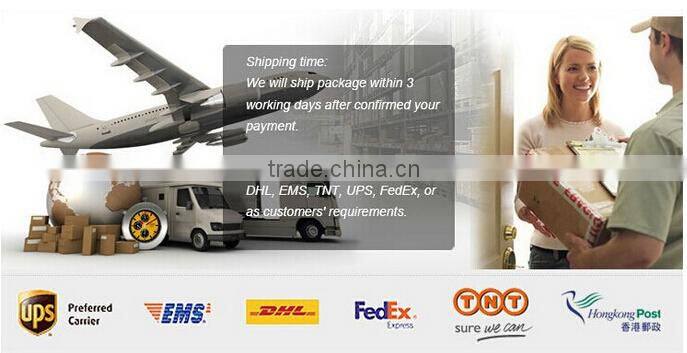 Shippment : small order will send by DHL/UPS/FEDEX/EMS , Our shipping agent has cooperated with us 6 years , price is the best and we will reduce the declare value for customers if they need , so it can save some tax .Big order we will send by air or sea , you can use your own shipping agent and also can use ours .