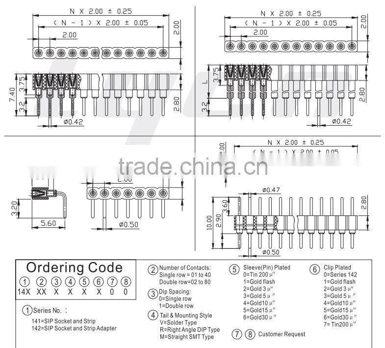 SIP Socket / PIN Connector Pitch : 2.54mm/2.00mm/1.778mm