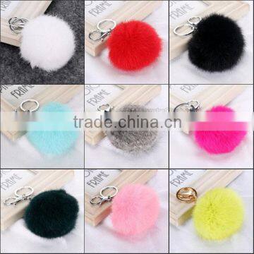 8cm Fur Pom Pom Keychain Rabbit Fur Ball Silver Keychain