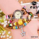NEW Vintage Handmade Buddha Wooden Beads Star Bracelet Wrist Watch