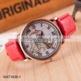 Fashion Map Roman Numerals Wristwatch Leather Bracelet Wrist Watch