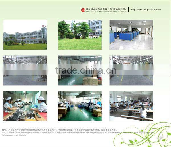 Customers' design concept----Draft construction----Original hand model Making----Hand model checking----Hand model confirmation----Contract sign-up----Tin mould start----Design artwork offer----Printed tin sample making----Printed tin sample confirmation----Production scheme implemented ----QC tracking ----Goods delivery----After service