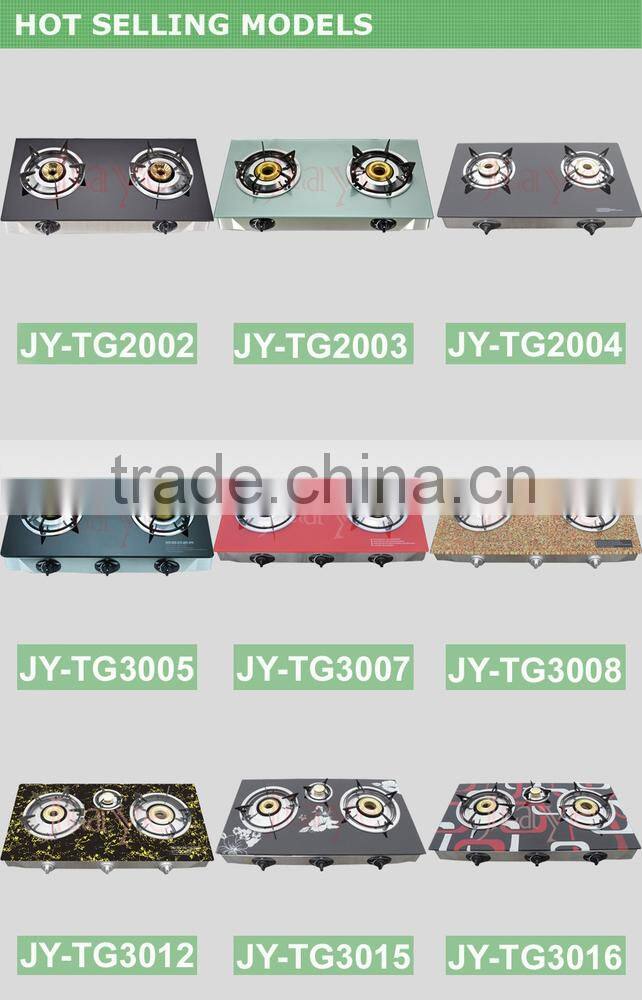 Classic design glass top table gas hob, 3 burner portable gas stove JY-TG3008