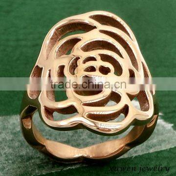 women laser cut flower shape stainless steel rose ring |