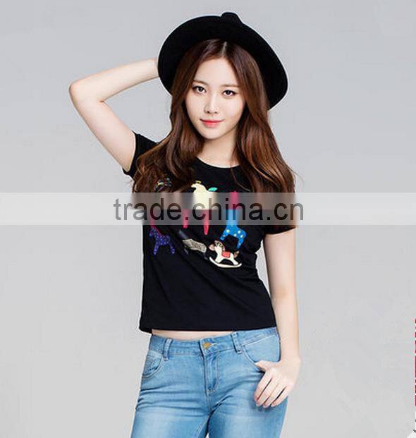 2016 New Design Cheap Top Quality Promotional Custom Wholesale Skin Tight Women's Short Sleeve t Shirt
