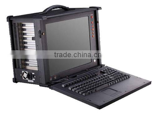 FSX-800 is a 15” portable computer which need to open by flip down. Its scalability is very superior.It has 10 PCI/PCI - E/ISA expansion slot,match Intel multi-core processors,high brightness LCD display,double aluminum chassis structure.It make hard anodic oxidation treatment on Surface,Prevent scratches and friction.At the Bottom of the chassis is equipped with two supporting feet,it used to adjust angle.The chassis is equipped with eight unique shockproof rubber mat at four corners. It has damping rubber ring in Hard disk and CD-ROM,is more adapt to use in a variety of bad environment.It provides the most cost-effective, durable, multi-standard platform for the application of a portable computer.It has been widely used in aerospace measurement and control, video conferencing, transportation, power, petrochemicals, railways and precision instruments and other fields.