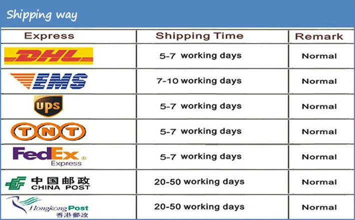 4. Various Shipping method, doing long term business with express, such as DHL, UPS, TNT, etc.