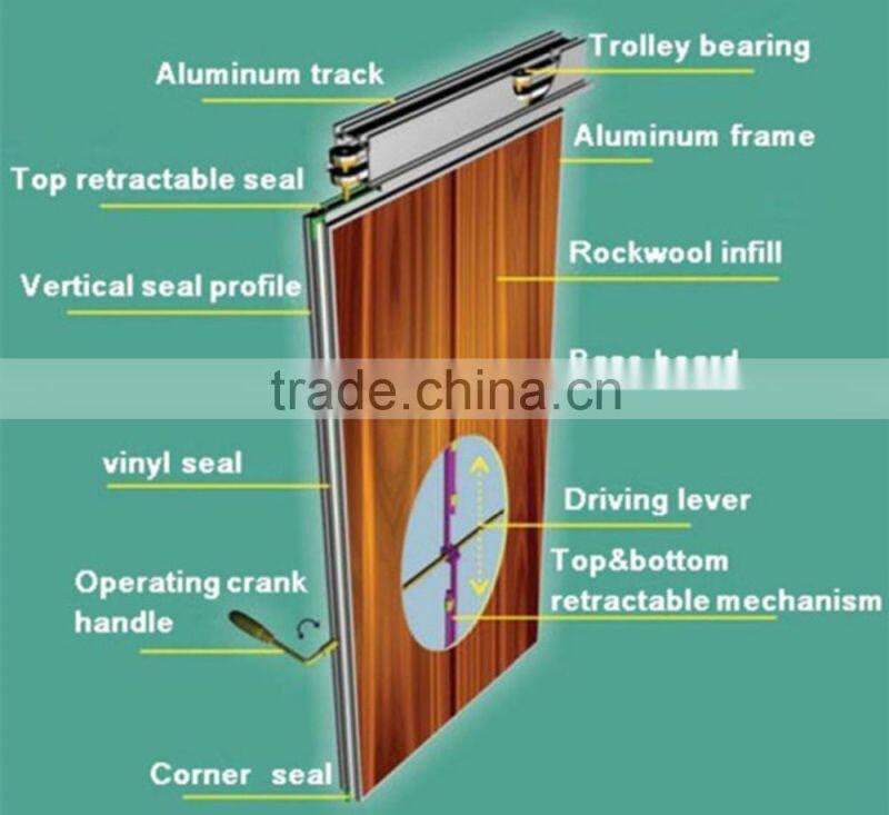 4) Rock wool infill,with top and bottom retractable mechanism in the middle and mdf,plywood or plaster base board on both side