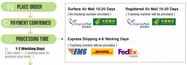 Shipping time:usually 3-7 days by DHL,UPS,TNT and Fedex etc.