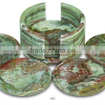 Natural MultiGreen Onyx Coaster Set of 6 Pcs with Holder , 100% hand-carved made purely with Onyx stone best for keeping below the Tea Cup, Glasses, Wine Glasses and Gifts.