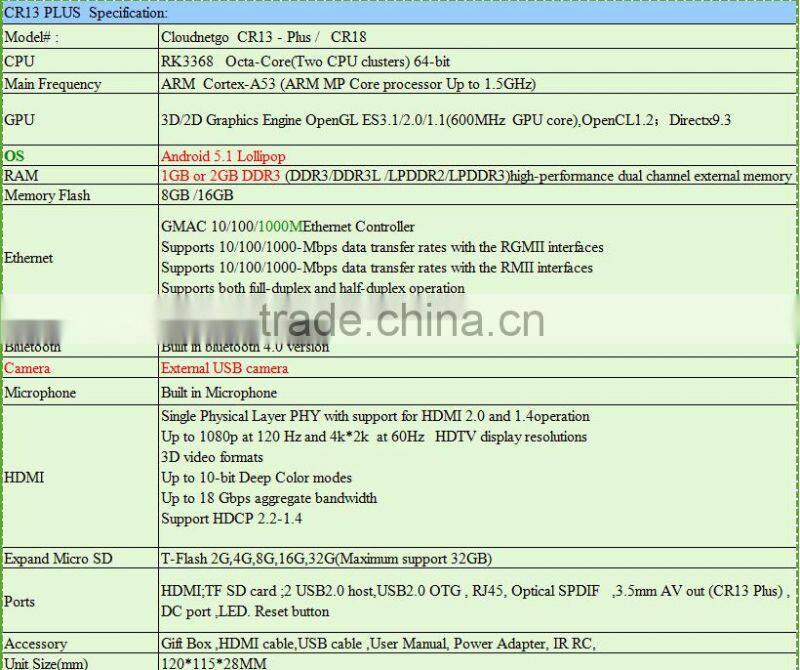 Cloudnetgo CR13 plus android tv box sata 8 core with wifi bluetooth and dual OS 3d movie cartoon 1080p android tv box dvb t2