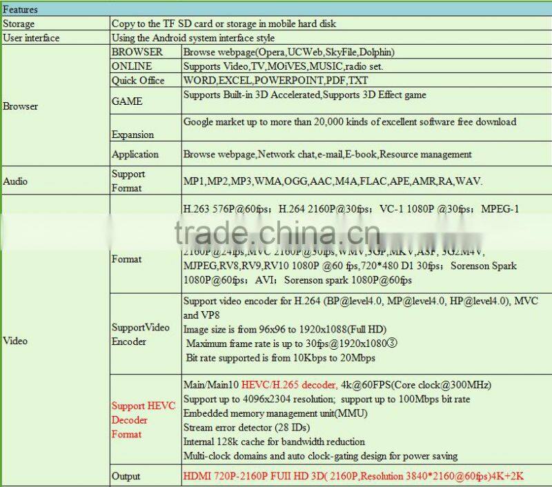 2.Main Frequency :ARM Cortex-A53 (ARM MP Core processor Up to 1.5GHz) 3. OS: Android5.1