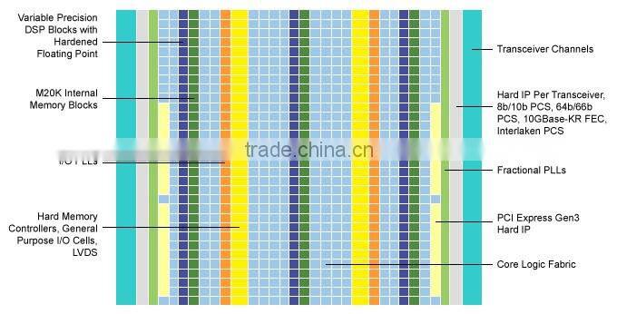| Arria 10 GX | FPGAs enabled with up to 96 full-duplex transceivers with data rates up to 17.4 Gbps chip-to-chip, 16.0 Gbps backplane, and up to 1,150K equivalent LEs |