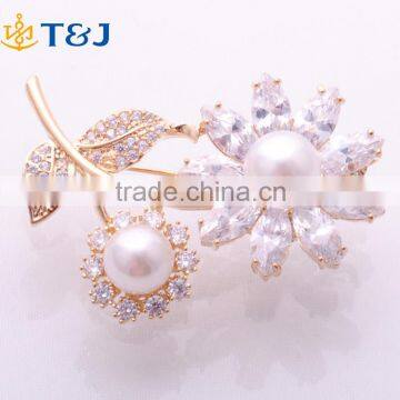 Fashion Elegant Women Flower Brooch Gold Plated Crystal Brooch Mother's Day Gift /