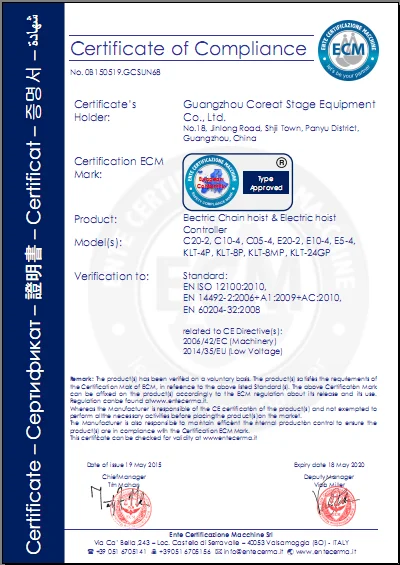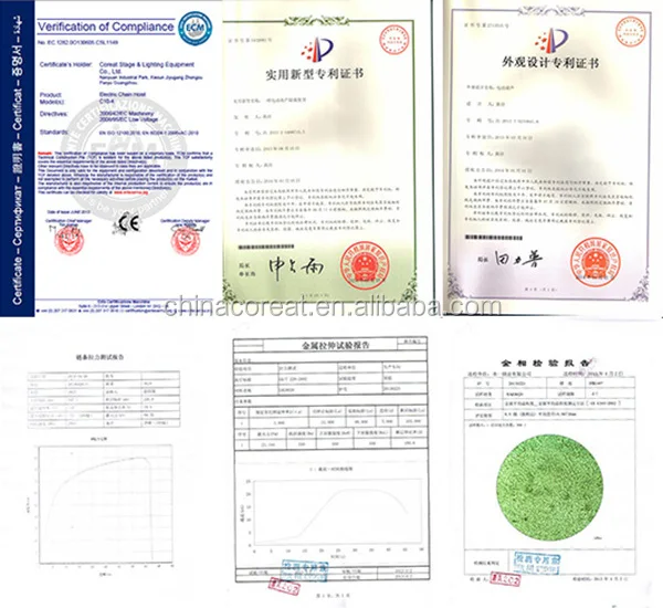Our researched stage electric hoist, with high intensity aluminium alloy case produced by gravity casting technology , who has been certificated CE by European Community and obtained appearance design and technology patent .The product is widely used by broad performance project partner and performance groups, getting their unanimous approval and trust .