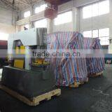 This machine adopts hydraulic drving and its the latest iron worker in our country ,Various metal plate,square bar,round bar,angle channel and joist can be cut,punched and notched on the machine,It is also equipped with a stop device for cutting .