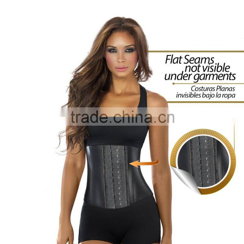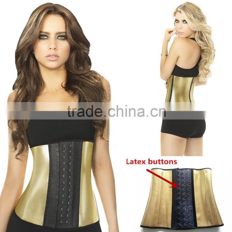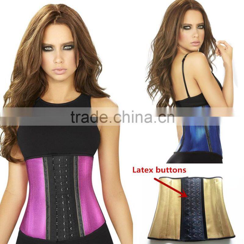 Five colors 9 steel bones 3 layers latex waist trainer shapers corset with latex buttons