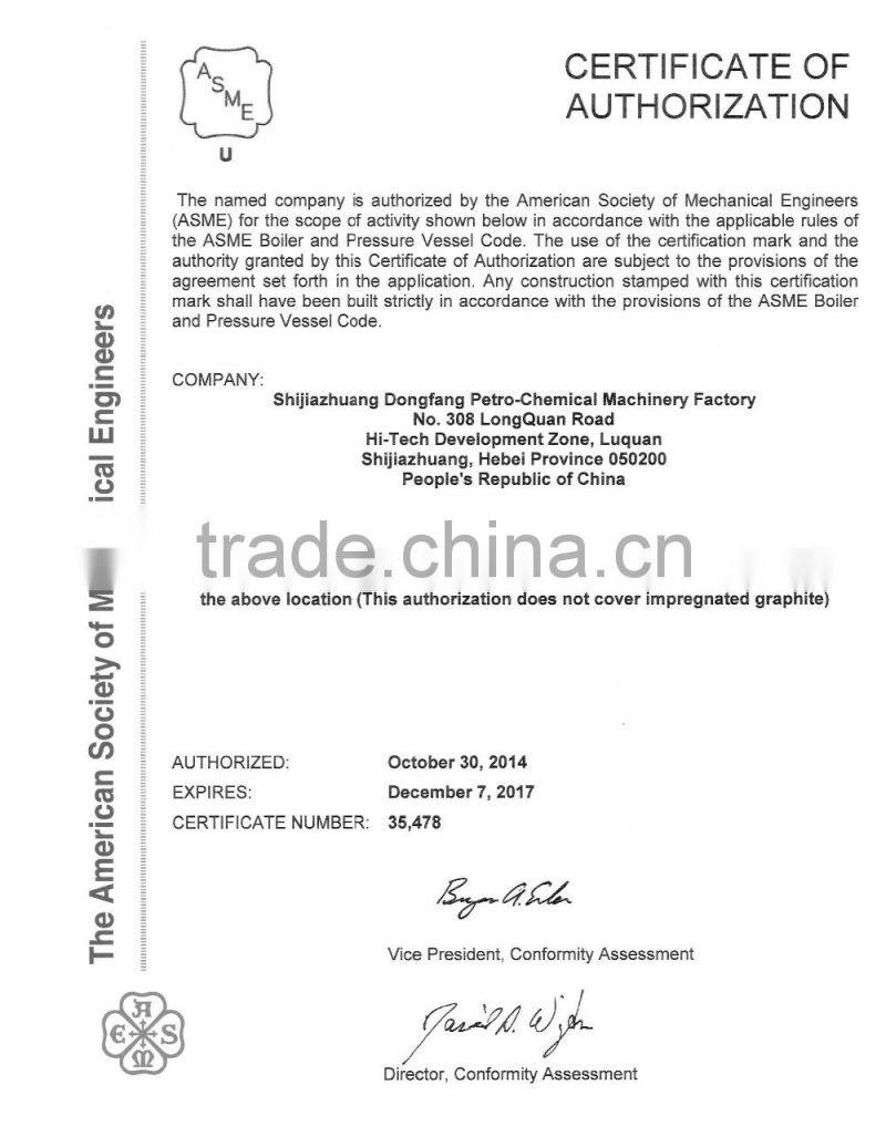 | Weight | 6800kgs | Certification | ASME; CE; PED | |