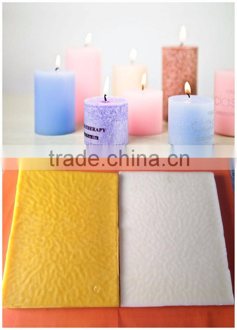 Our bee wax is collected from local beekeepers where the honey bees fly among acacia, sunflower, rape and wildflowers. The resulting wax is a beautiful shade of yellow that has an aromatic honey fragrance. We physically refine the raw bee wax in our factory filtration equipment to remove natural bee residuals, the color and scent are made by the hardworking bees.