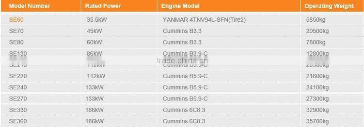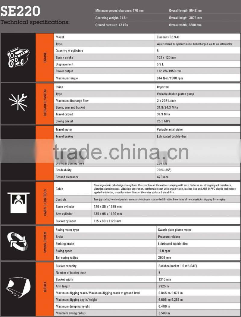 The SE210 model features imported hydraulic parts, negative flow and electronic controls. It is a high-