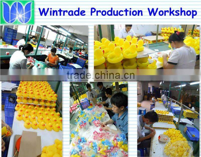 We Wintrade(Rongqi Toy Factory) is a manufacturer of Rubber duck,bath toy and flashing toys,integrating R&D and sale.Our products are extensively used in bathroom,promotion and other industries. Guaranteeing stable and timely supply, credible quality and sincere service, our products sell well in overseas markets,especially EU and US.We have obtained ROHS,CE,ASTM,EN71,1,2,3,Phthalates and etc product certificates. If you are interested in any of our products, or wish to place a customized order, please contact us. We will do our best to meet your needs.