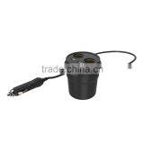 Cup Type Car Charger With 2 Cigarette Hole Double USB Output