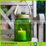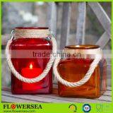 2016 Factory Price Ornament Decorative Glass Votive Candle Jar With Rope Handle