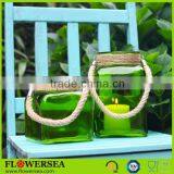 Eco-friendly Decor Home Recyclable Glass Candle Holder With Rope Handle