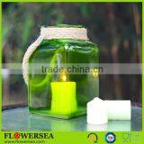 Colorful Square Glass Candle Jars With Hemp Rope