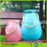 Big Stomach Colorful Frosted Glass Candle Jar With Rope Handle