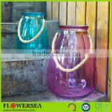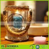 Eco-friendly Decor Home Cheap Hanging Glass Votive Candle Holders With Rope Handle