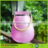 Free Sample Colored Frosted / Clear Glass Candle Holder With Rope Handle