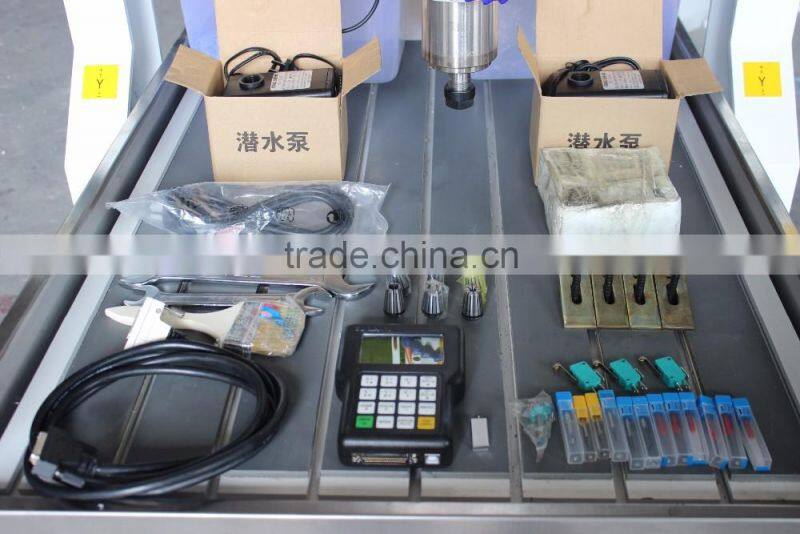 3.Low noise 2.5kw water cooling spindle, high rotated speed(24000rpm), can realize only diameter 0.1mm tools engraving on the hardness terials.