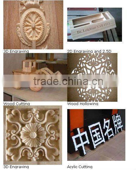 Suitable to process different various colorful plates and moulds, such as: advertisement plate, construction model, wooden handicraft, Display Board, aluminum product drilling and cutting, furniture decoration and etc.