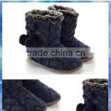 Fairisle Knit Indoor Cheap Boots With Cute Pom-pom