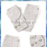 100% Wool Grey Half Finger High Quality Knitted Gloves for Women