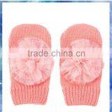 Pink Plain Knitted Cotton Hand Gloves Mitten With Flower