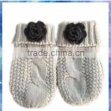 1,kids beige cable cotton knitted gloves mitten with crochet flower2, professional manufacturer