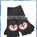 Half Finger Cute Owl Knitted Grey Hand Gloves for Women