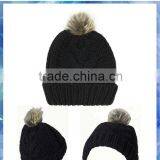 Black Chunky Cable Knit Hat/custom Pom Pom Beanies/fur Pom Pom Beanie